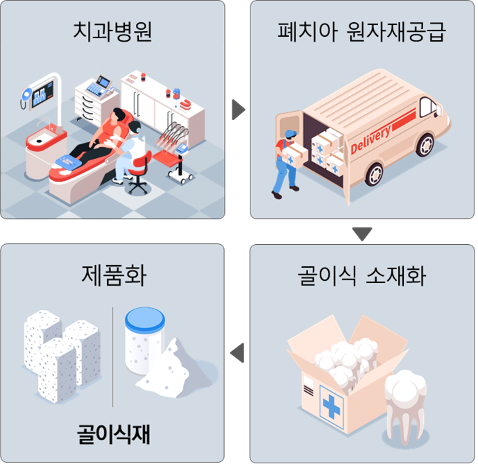 재활용이 금지된 폐치아를 산업적 목적으로 재활용하여 의료기기(골이식재) 시장을 새로 개척하고, 치의학 ‘연구-임상-사업화’ 선순환 생태계 조성